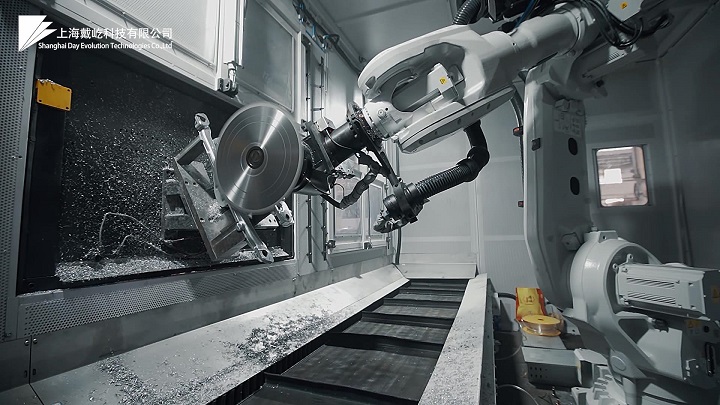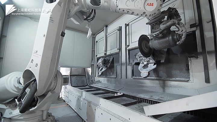 机器人抓持工具并运行到工件的不同的工艺位置。适用于中大型铸铝件的飞边、毛刺、分型线的清理以及浇冒口的去除。